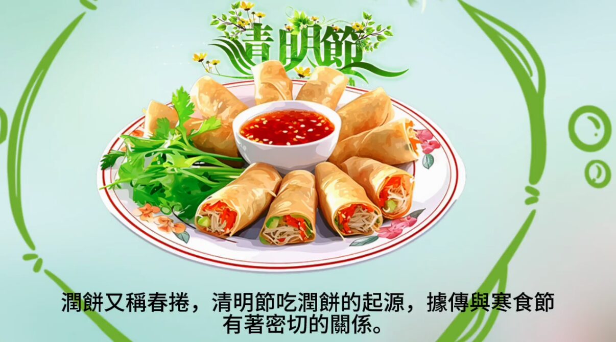 潤餅又稱春捲,清明節吃潤餅的起源,據傳與寒食節有著密切的關係。