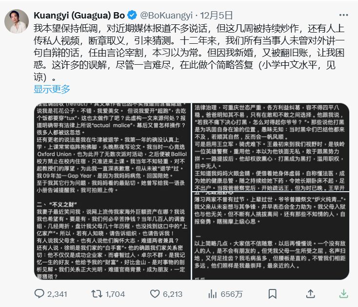 我本望保持低调,对近期媒体报道不多说话,但这几周被持续炒作,还有人上传私人视频,断章取义,引来猜测。十二年来,我们所有当事人未曾对外讲一句自辩的话,任由言论宰割,本习以为常。但因我新婚,又被翻旧账,让我困惑。这许多的误解,尽管一言难尽,在此做个简略答复(小学中文水平,见谅)。