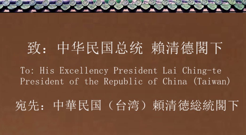 致:中华民国总统 赖清德阁下(正体简体.English)Deutsch.Japanese.Tiếng Việt