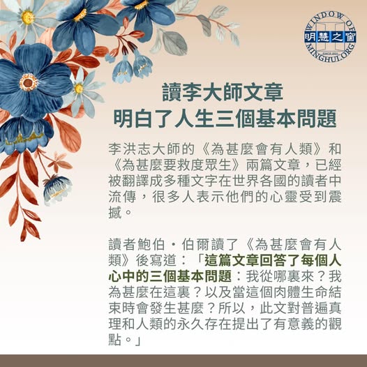 【大.纪.元;2023年01月21日讯】美东时间2023年1月20日,法轮功创始人李洪志大师授权大.纪.元;发表《为什么会有人类》,全文如下:
