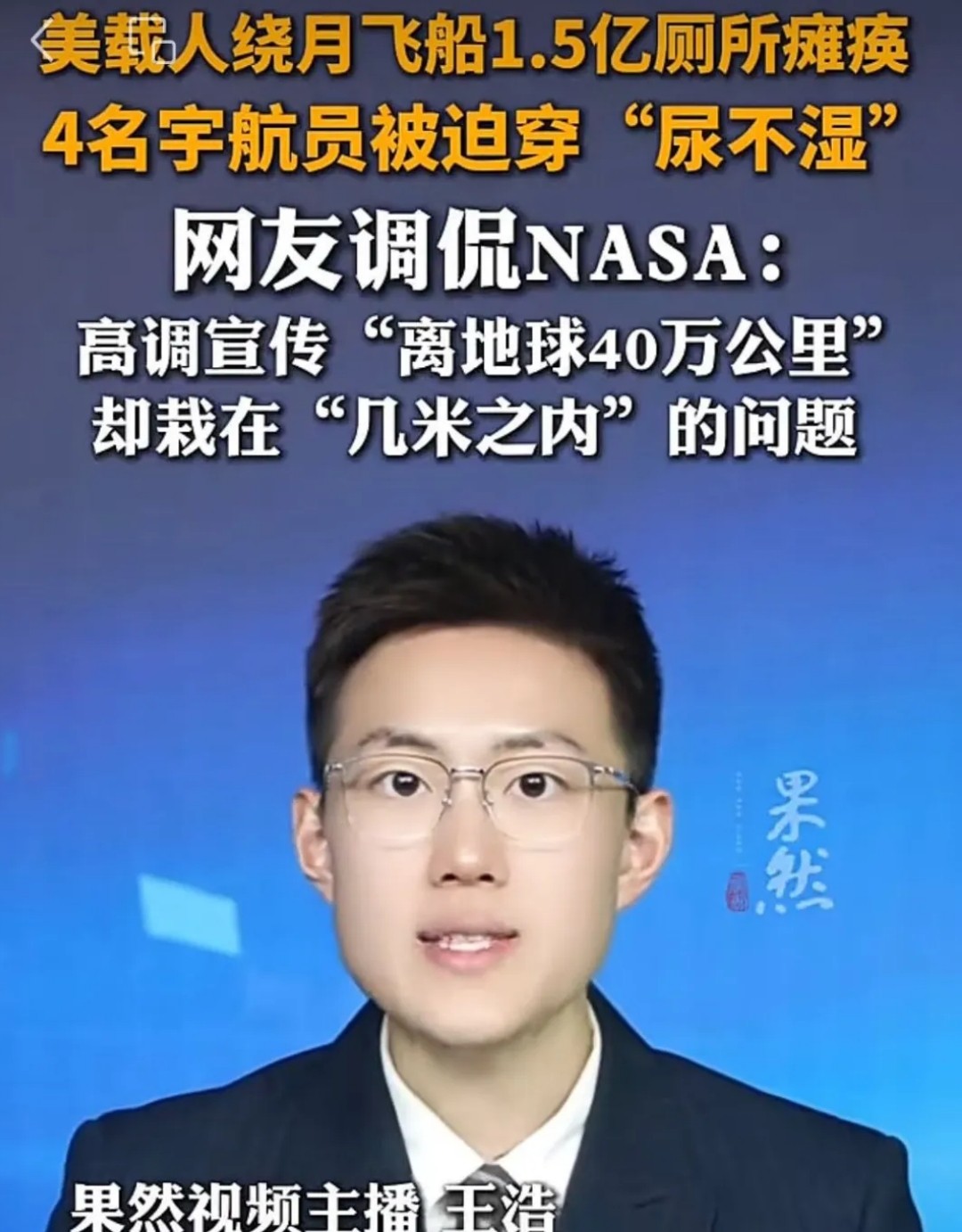 而我们的一些媒体,一直盯着失灵的马桶,不厌其烦地播报宇航员只能用尿不湿。