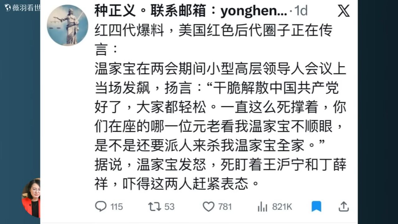 帖子说温家宝在两会期间的小型高层领导人会议上 当场发飙扬言:
