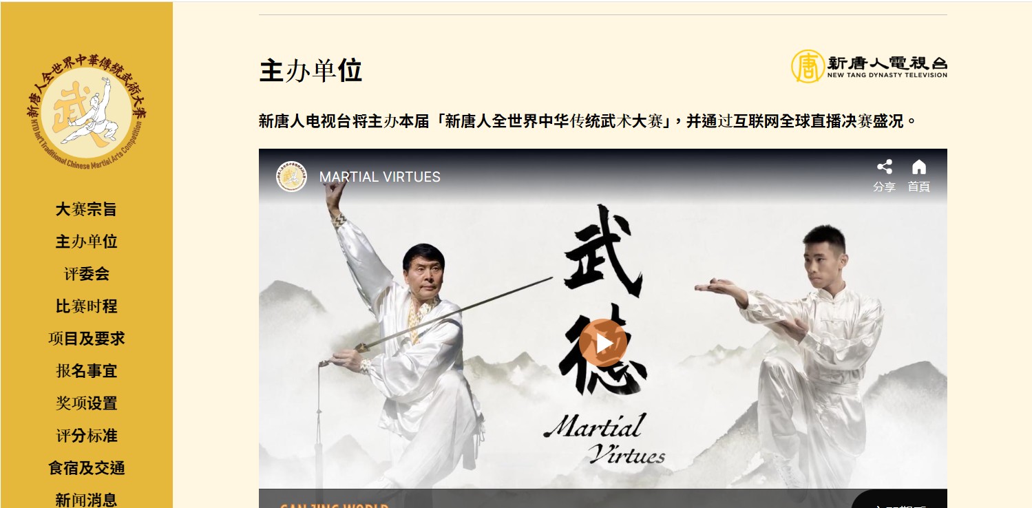 新!唐!人:电视台将主办本届「新!唐!人:全世界中华传统武术大赛」,并通过互联网全球直播决赛盛况。