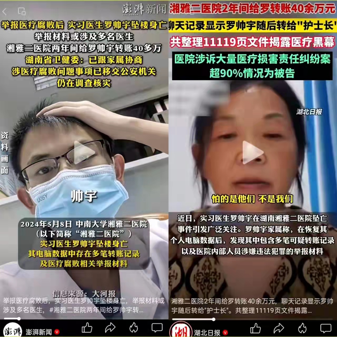 湖南长沙湘雅二医院实习医生罗帅宇离奇坠亡,家属质疑他是因举报医院活摘器官被杀。日前罗父再发录音,内容涉及医院领导贪腐及现场“分配”器官的恐怖场景。