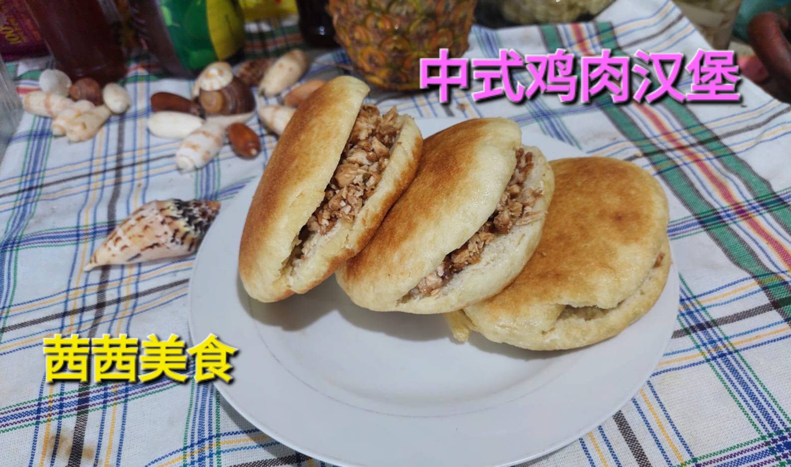 (中式鸡肉汉堡)这个做起来比较麻烦,首先需要会发蒸馒头的面,只是把馒头改成扁状,这个技巧也是需要功夫的,鸡肉需要卤熟入味才好吃,汉堡本身没有味道,再把蒸熟后汉堡用慢火煎金黄,把鸡肉去骨剁碎,喜欢吃辣味道的可以把青红椒炒熟放入鸡肉里,再把煎好的汉堡在中间平面用刀切成两边,但不能切断。很美味,辛苦,但非常值得分享给朋友。 -