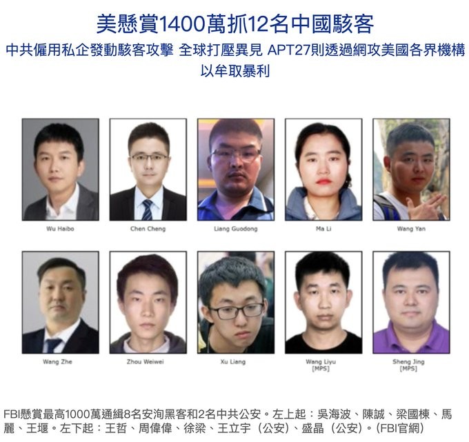 本次行動鎖定12名中國公民,其中包括兩名中共公安、中國安洵信息技術有限公司(i-Soon)員工,以及APT27(高級持續性威脅組織27)成員。這些人涉嫌參與全球範圍內的駭客攻擊,通過網絡攻擊多家美國企業、新聞媒體及政府機構,並將竊取的數據出售給中共政府。 🖥️