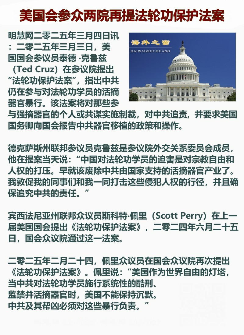 美国会两院再提法轮功保护法案