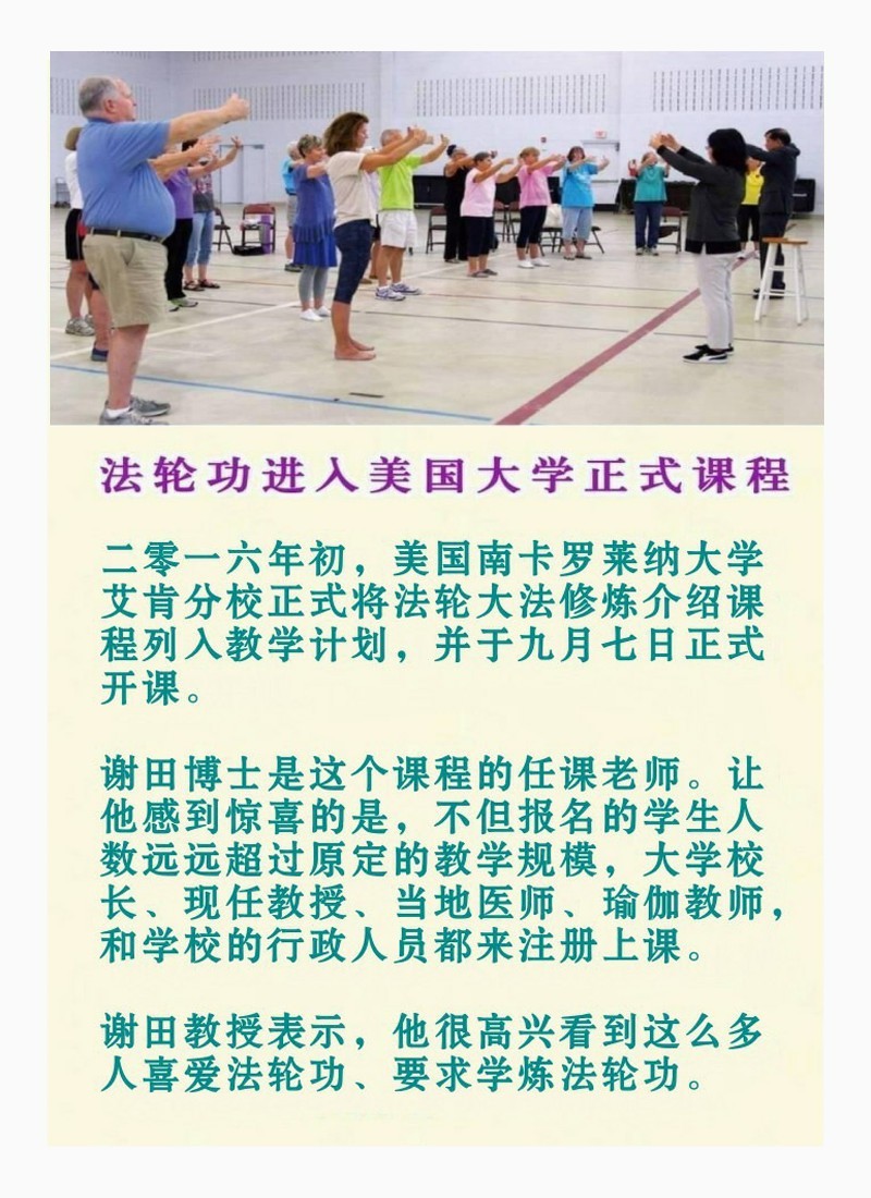 法轮功进入美国大学正式课程