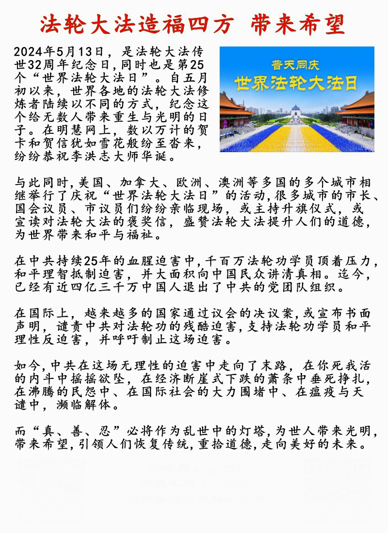 法轮大法造福四方 带来希望