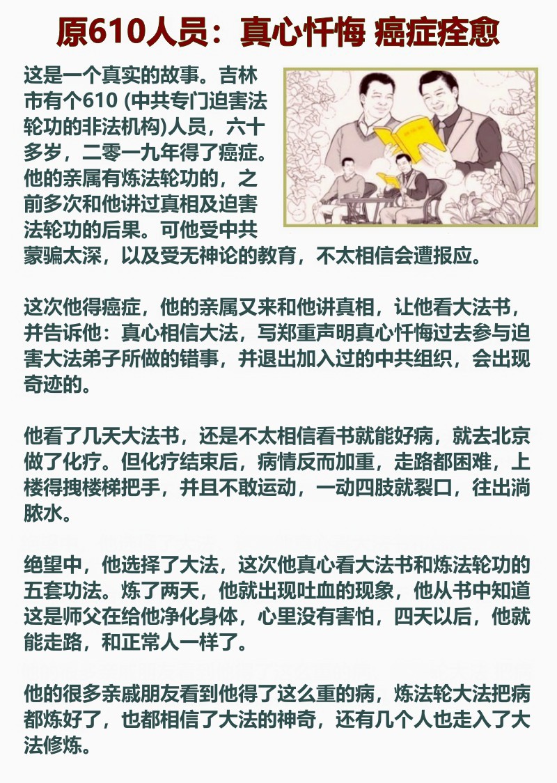原610人员: 真心忏悔 癌症痊愈