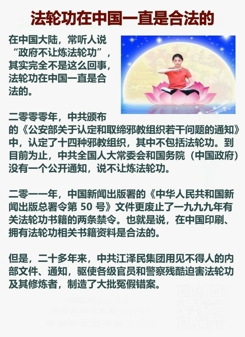 法轮功在中国一直是合法的